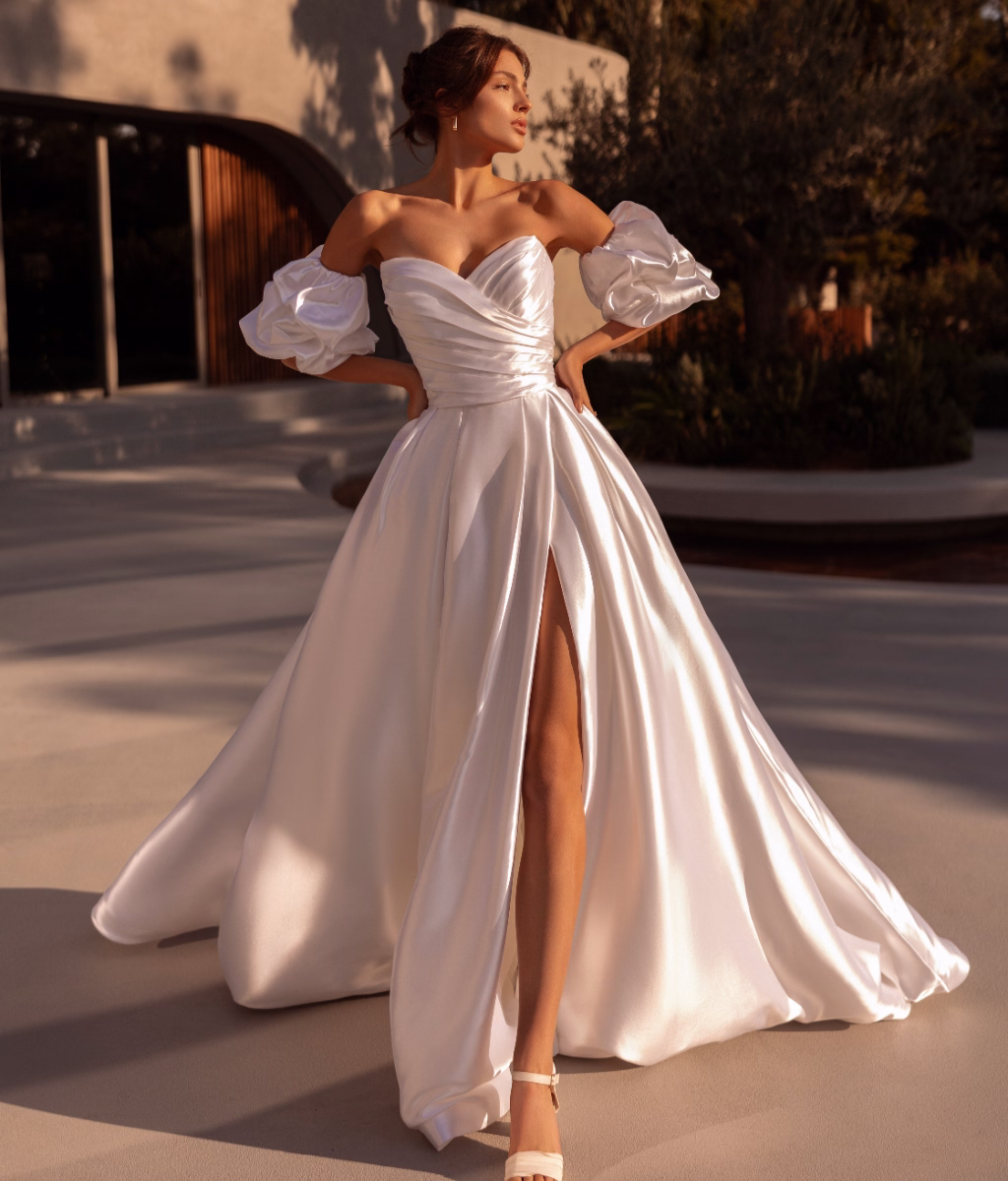 La marque propose un large éventail de styles : lignes sirène, coupes princesses, fourreaux glamour, dos dentelle, bustiers travaillés. Chaque modèle bénéficie d’un tombé parfait, d’une modernité intemporelle et d’un sens du détail qui fait la différence. La ligne Platinum de Demetrios, dédiée au haut de gamme, incarne l’excellence et l’audace pour les mariées en quête d’exception.