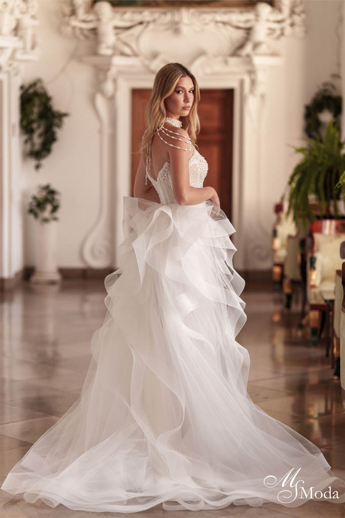 Découvrez le modèle Fortuna, un modèle d’exception signé MS Moda. Issu de notre collection 2026, il marie savoir-faire artisanal et détails raffinés pour sublimer chaque silhouette.
