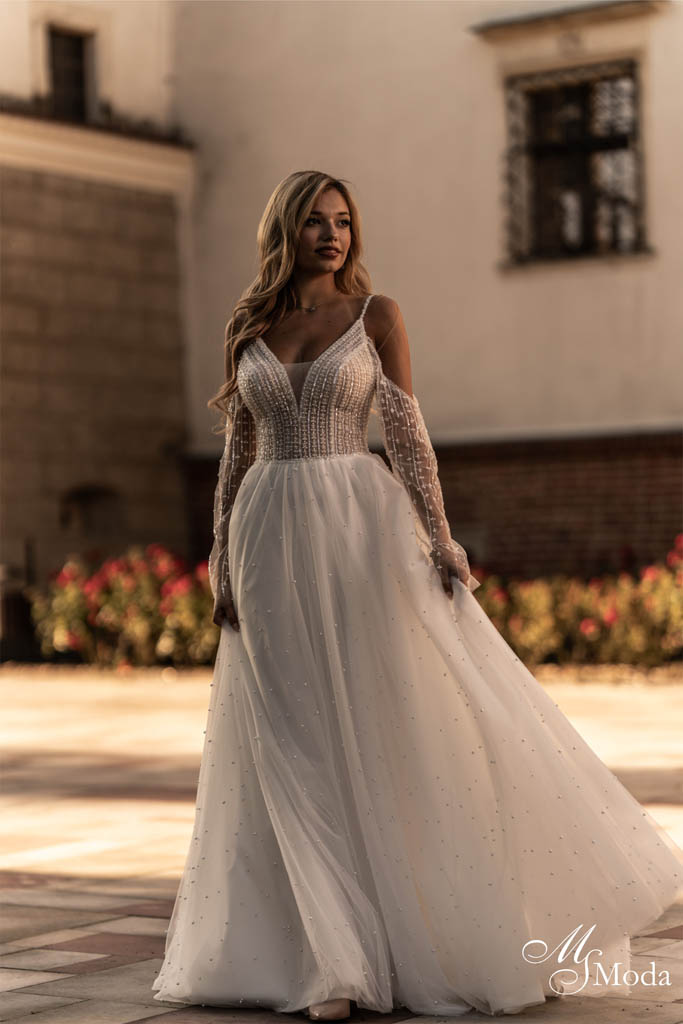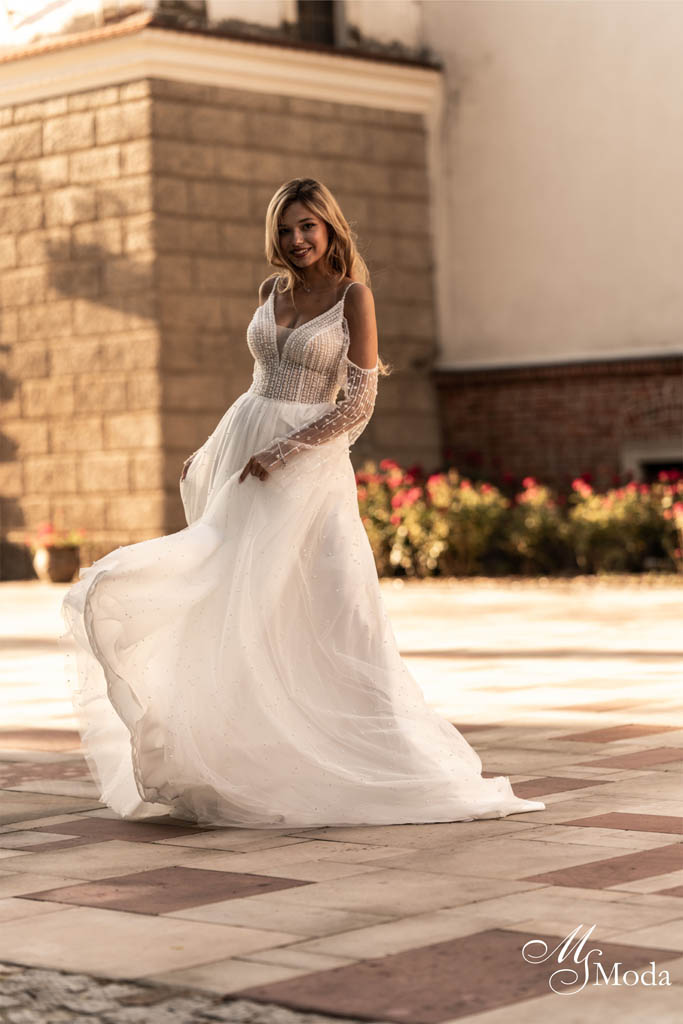 Découvrez le modèle Giuliana, un modèle d’exception signé MS Moda. Issu de notre collection 2026, il marie savoir-faire artisanal et détails raffinés pour sublimer chaque silhouette.