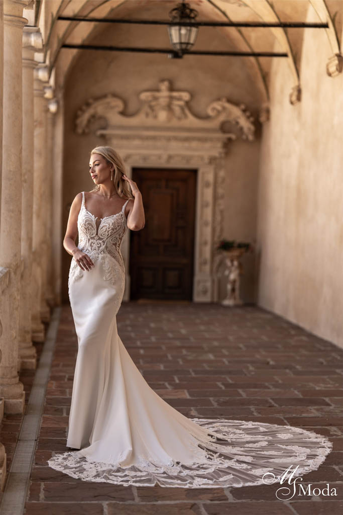 Découvrez le modèle Helena, un modèle d’exception signé MS Moda. Issu de notre collection 2026, il marie savoir-faire artisanal et détails raffinés pour sublimer chaque silhouette.