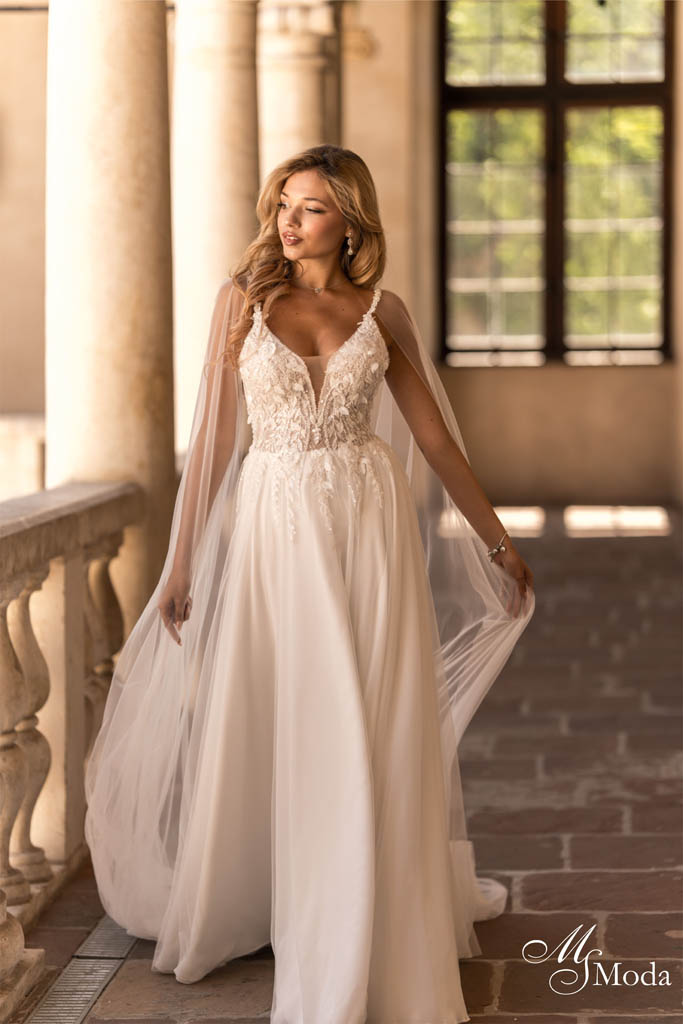 Découvrez le modèle Liliana, un modèle d’exception signé MS Moda. Issu de notre collection 2026, il marie savoir-faire artisanal et détails raffinés pour sublimer chaque silhouette.