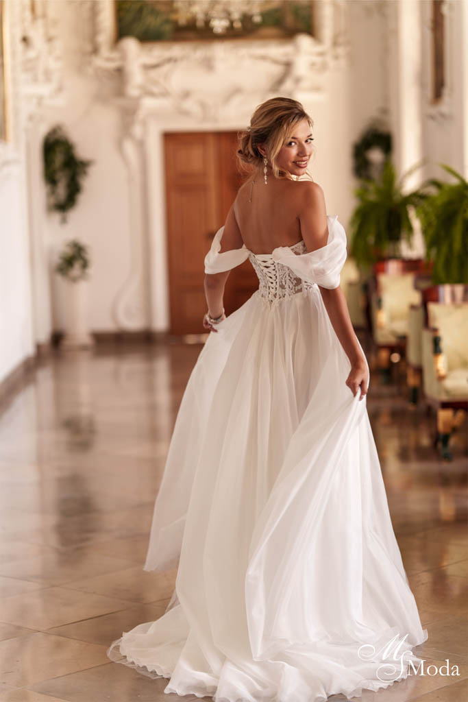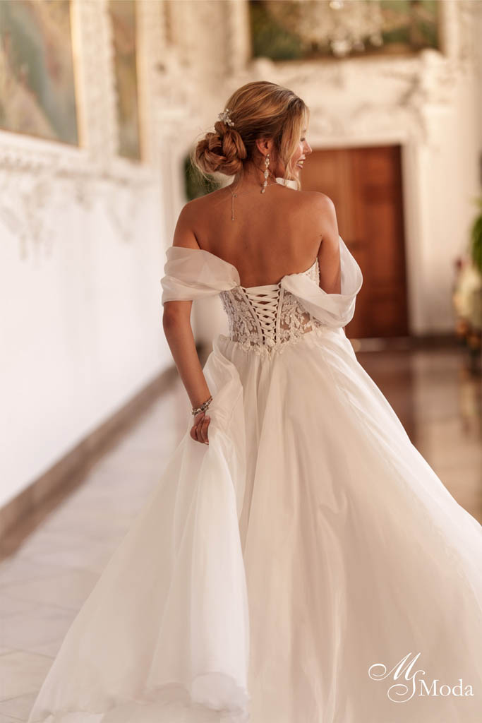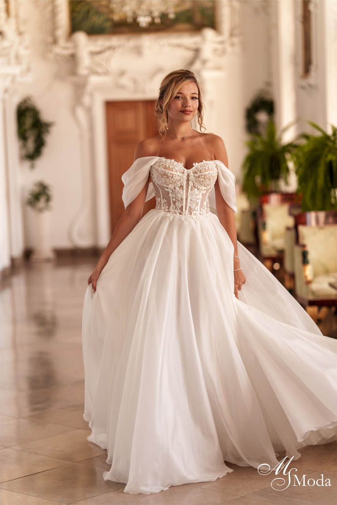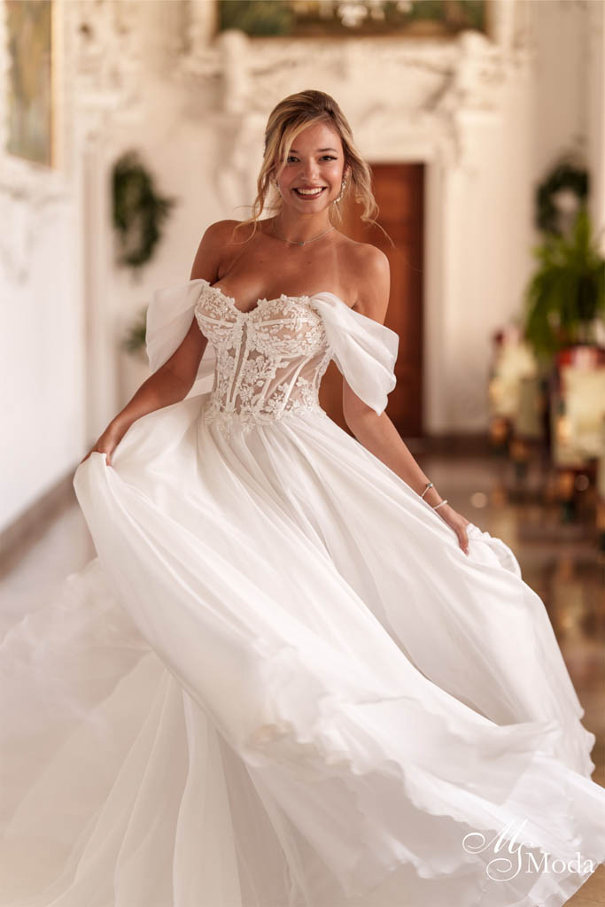 Découvrez le modèle Lucia, un modèle d’exception signé MS Moda. Issu de notre collection 2026, il marie savoir-faire artisanal et détails raffinés pour sublimer chaque silhouette.