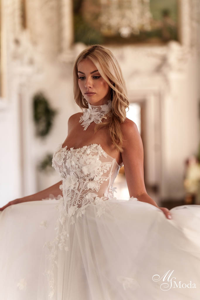 Découvrez le modèle Milagros, un modèle d’exception signé MS Moda. Issu de notre collection 2026, il marie savoir-faire artisanal et détails raffinés pour sublimer chaque silhouette.