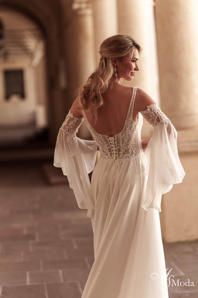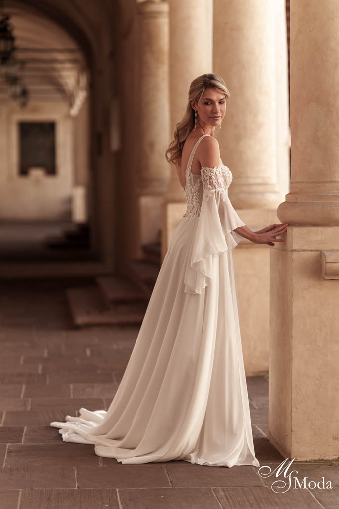 Découvrez le modèle Stella, un modèle d’exception signé MS Moda. Issu de notre collection 2026, il marie savoir-faire artisanal et détails raffinés pour sublimer chaque silhouette.