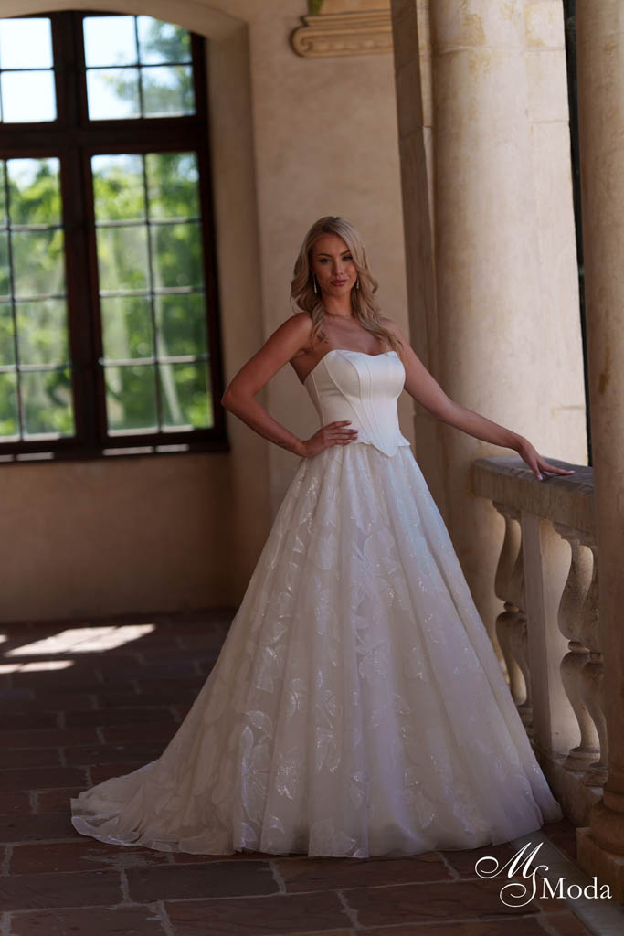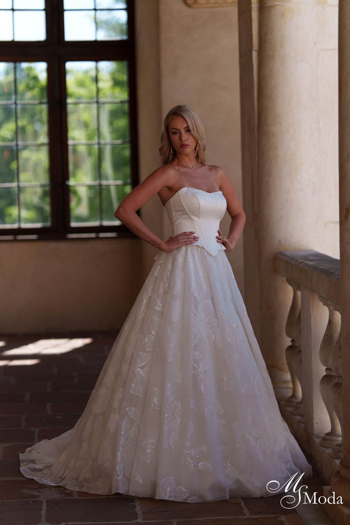 Découvrez le modèle Xymenia, un modèle d’exception signé MS Moda. Issu de notre collection 2026, il marie savoir-faire artisanal et détails raffinés pour sublimer chaque silhouette.